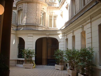 Completely renovated, this apartment is on the second floor with an elevator. Very sunny and silent, it is open on a quiet courtyard. It is very representative of a typical high class architecture of the Second Empire with an impressive entrance inspired from the Opera Garnier, high ceilings and romantic painted windows in the kitchen.